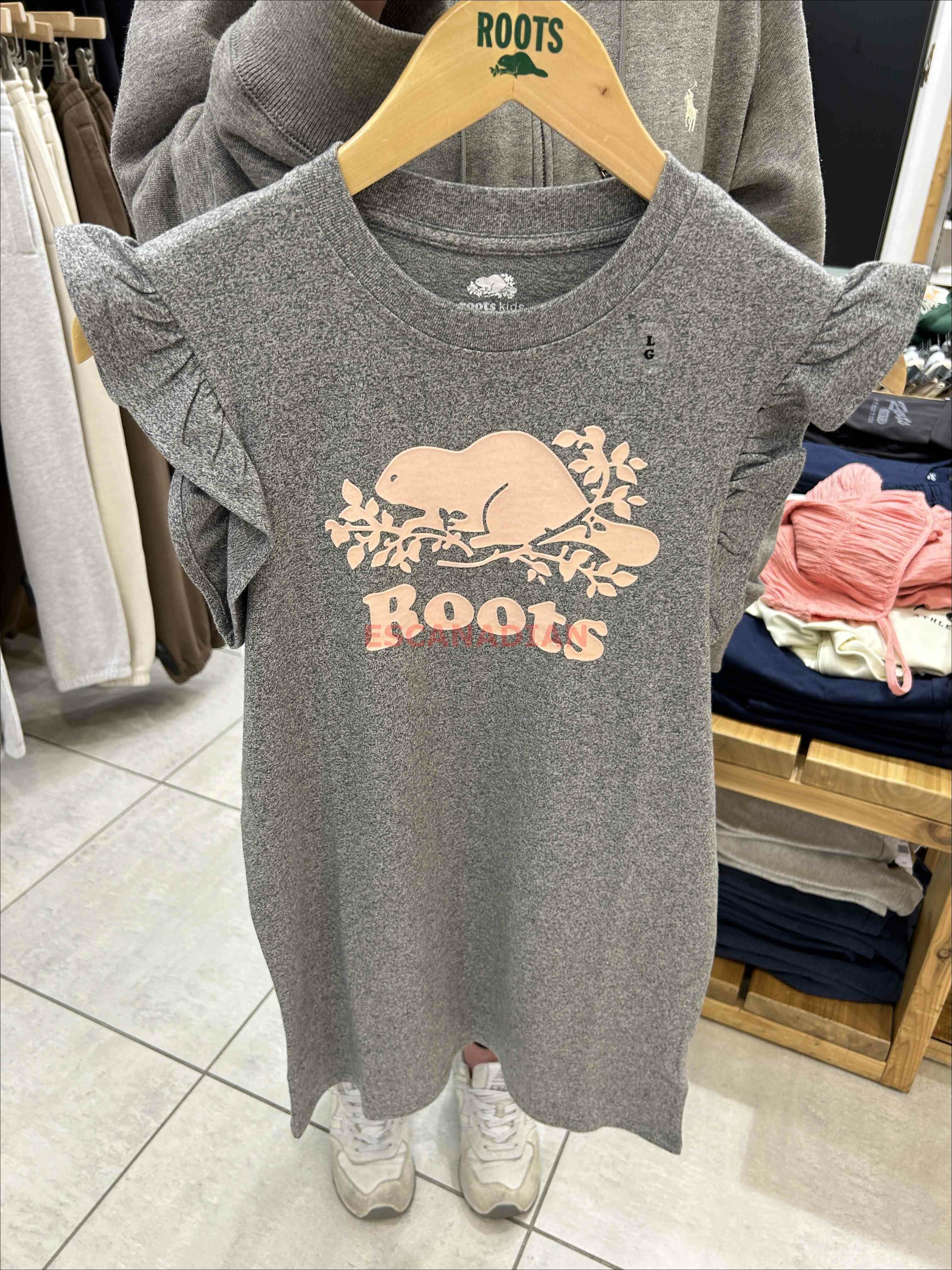 ROOTS 女大童 經典款 滿版 海狸 洋裝